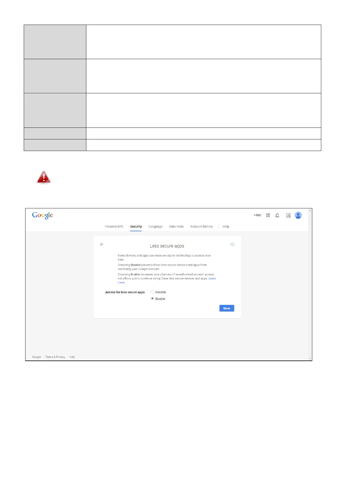 Gmail users please ensure that “Less Secure Apps” is enabled in your