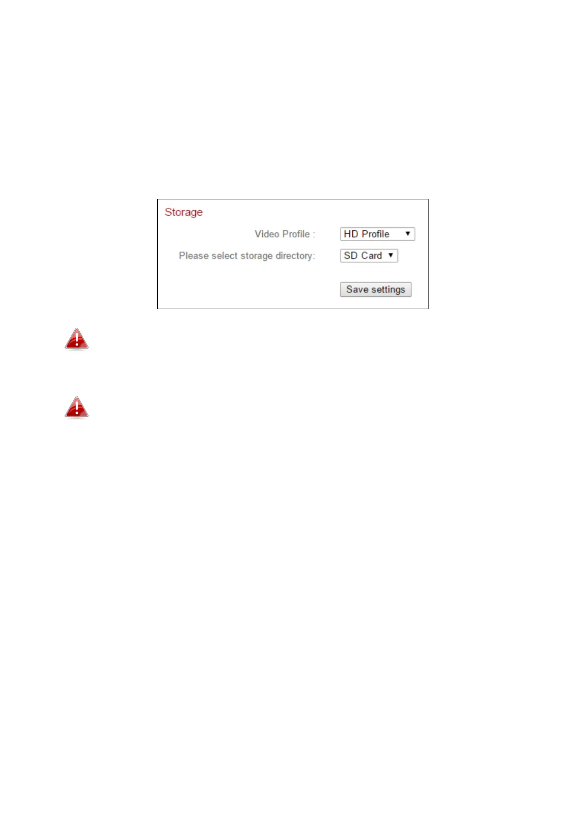 Select a video profile for the recordings (HD, SD or Small) and select your