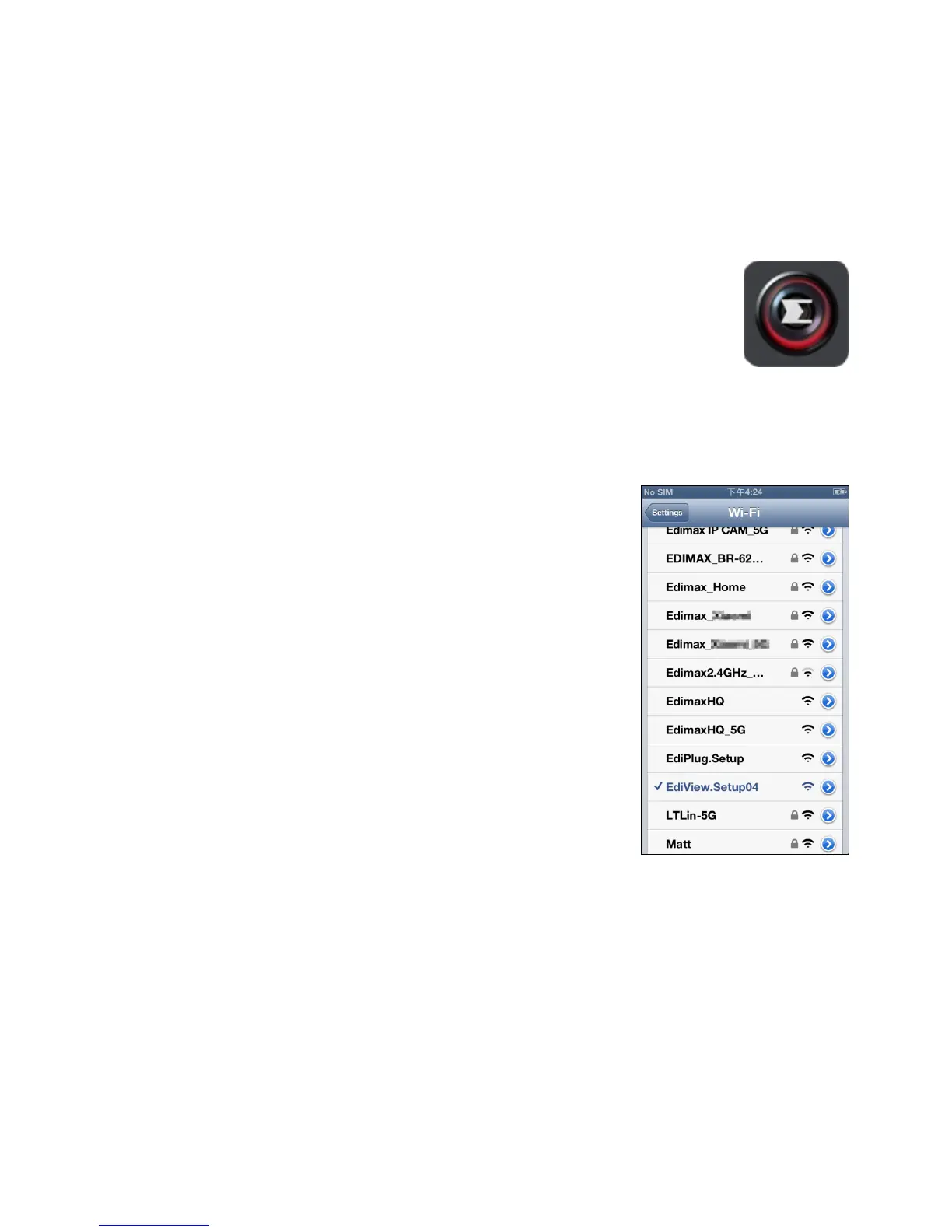 network camera’s SSID, before opening the EdiView II app. Continue to