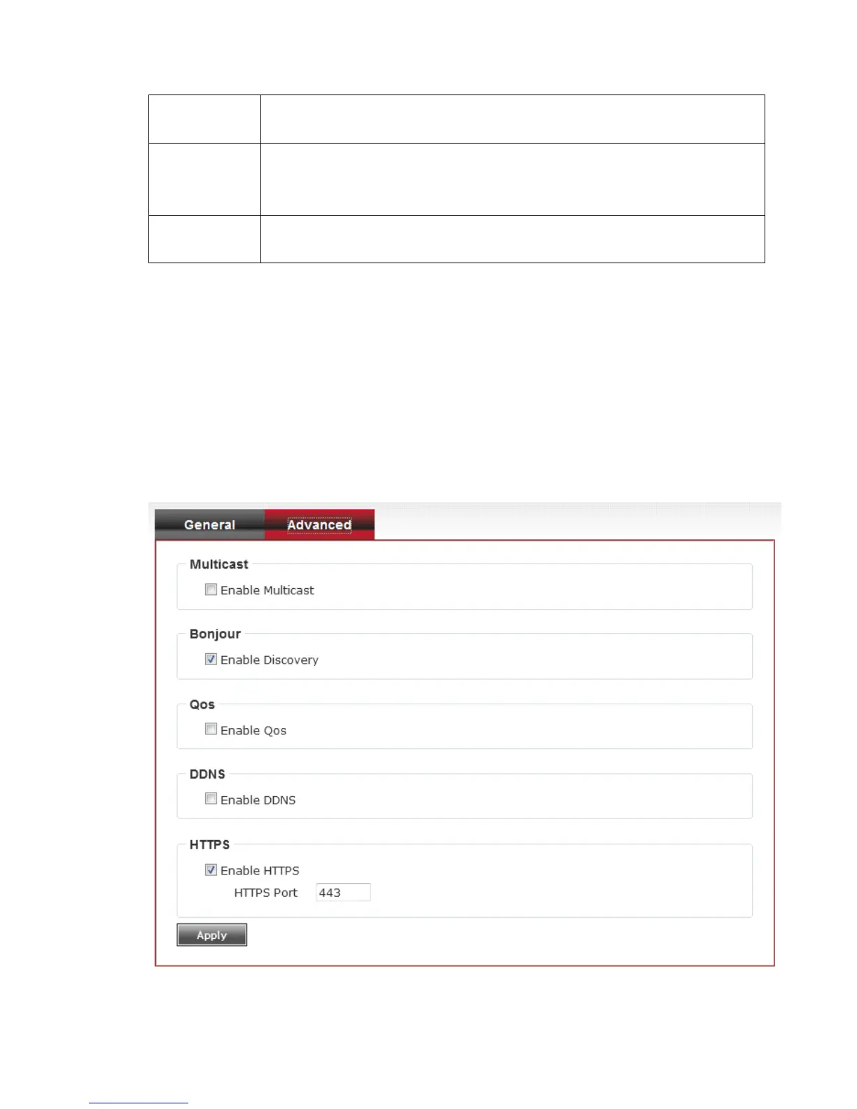 You can setup advanced network settings in this page. This page is