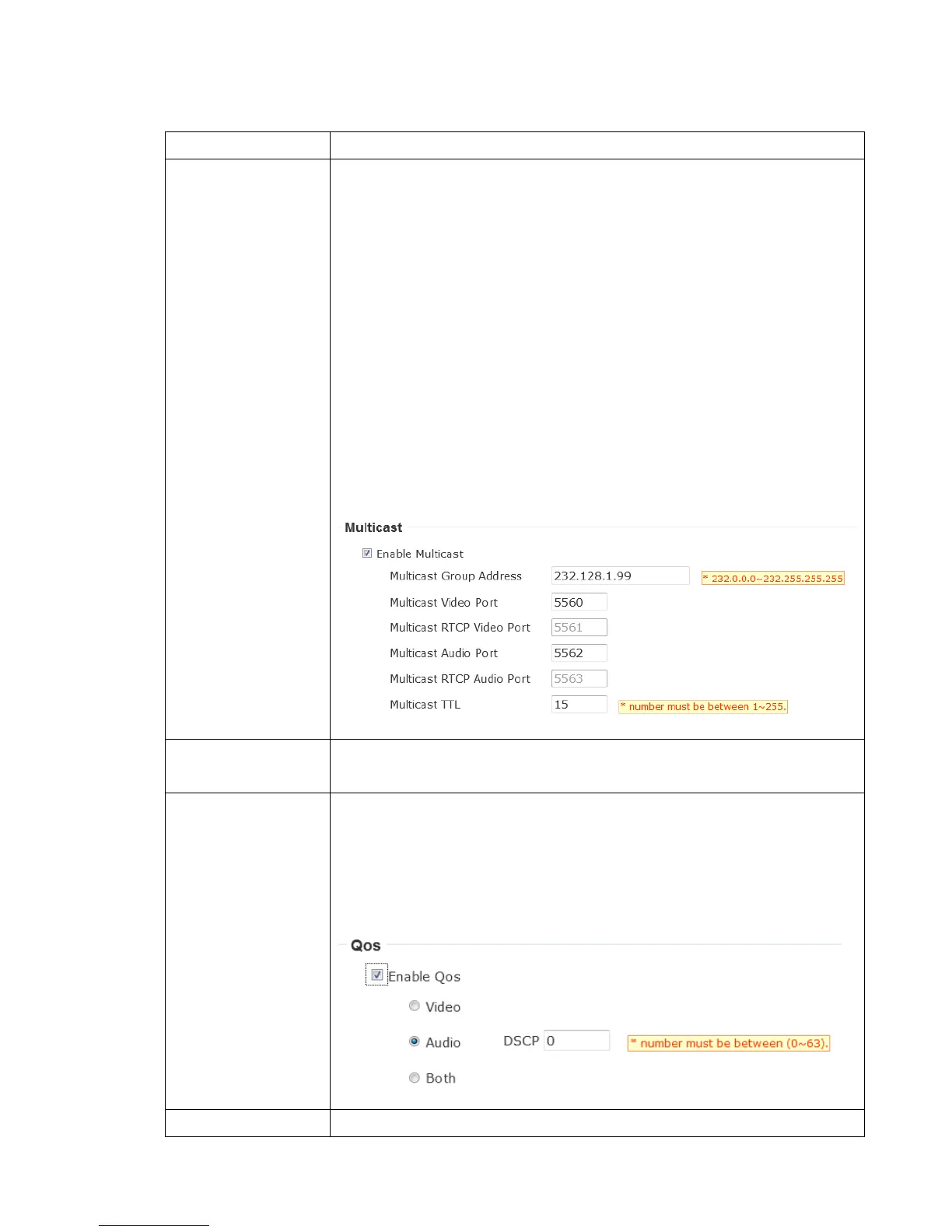 You can select Video / Audio’s QoS DSCP value (0 to 63), or