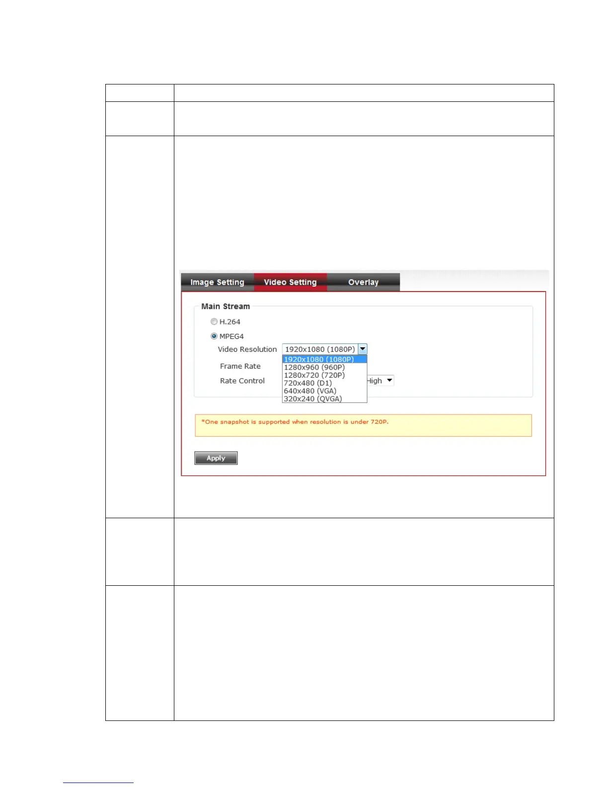 Please note that some video resolution is not available when video