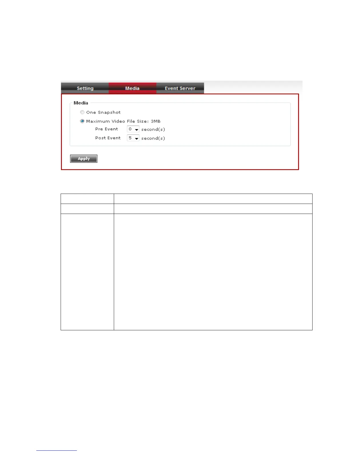 Note: If the “Pre Event” set to “0” second, the “Post Event”