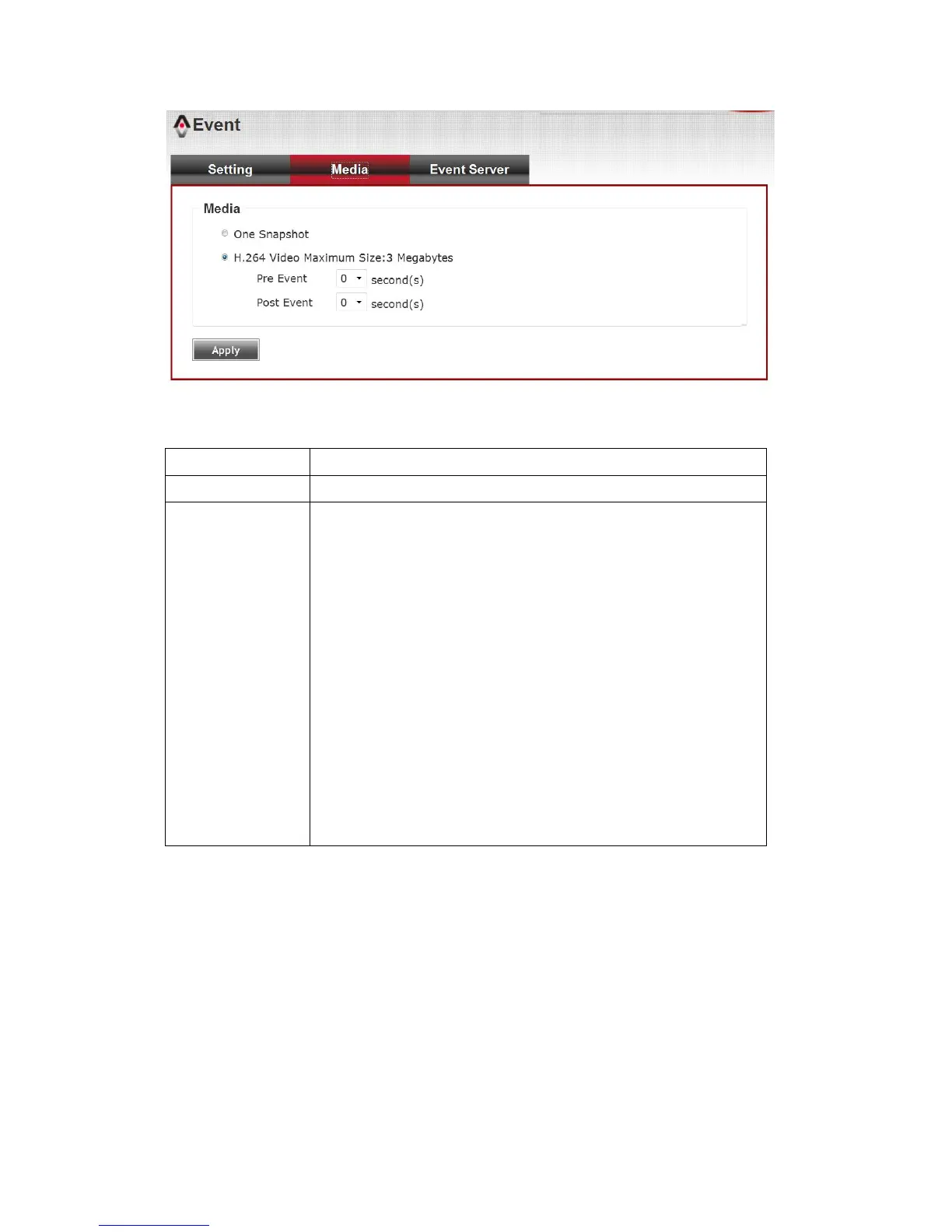 Note: If the “Pre Event” set to “0” second, the “Post