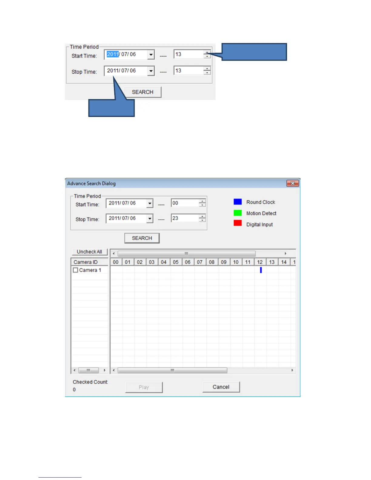 When you finish, click ‘SEARCH’ button to search for recorded video, and