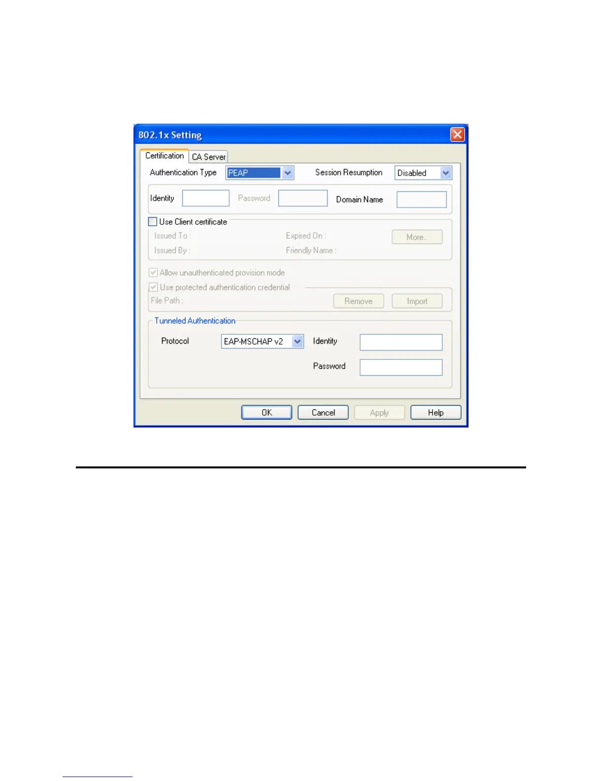 Type The type you select here must be identical to the type of the 802.1x authentication