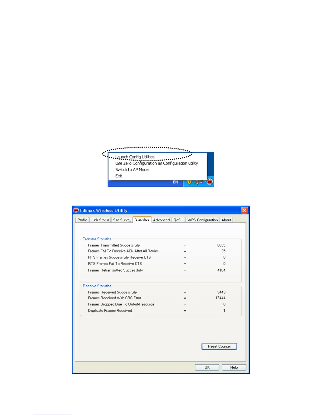 1. Right-click the Edimax configuration utility icon located at lower-right corner of computer desktop, then