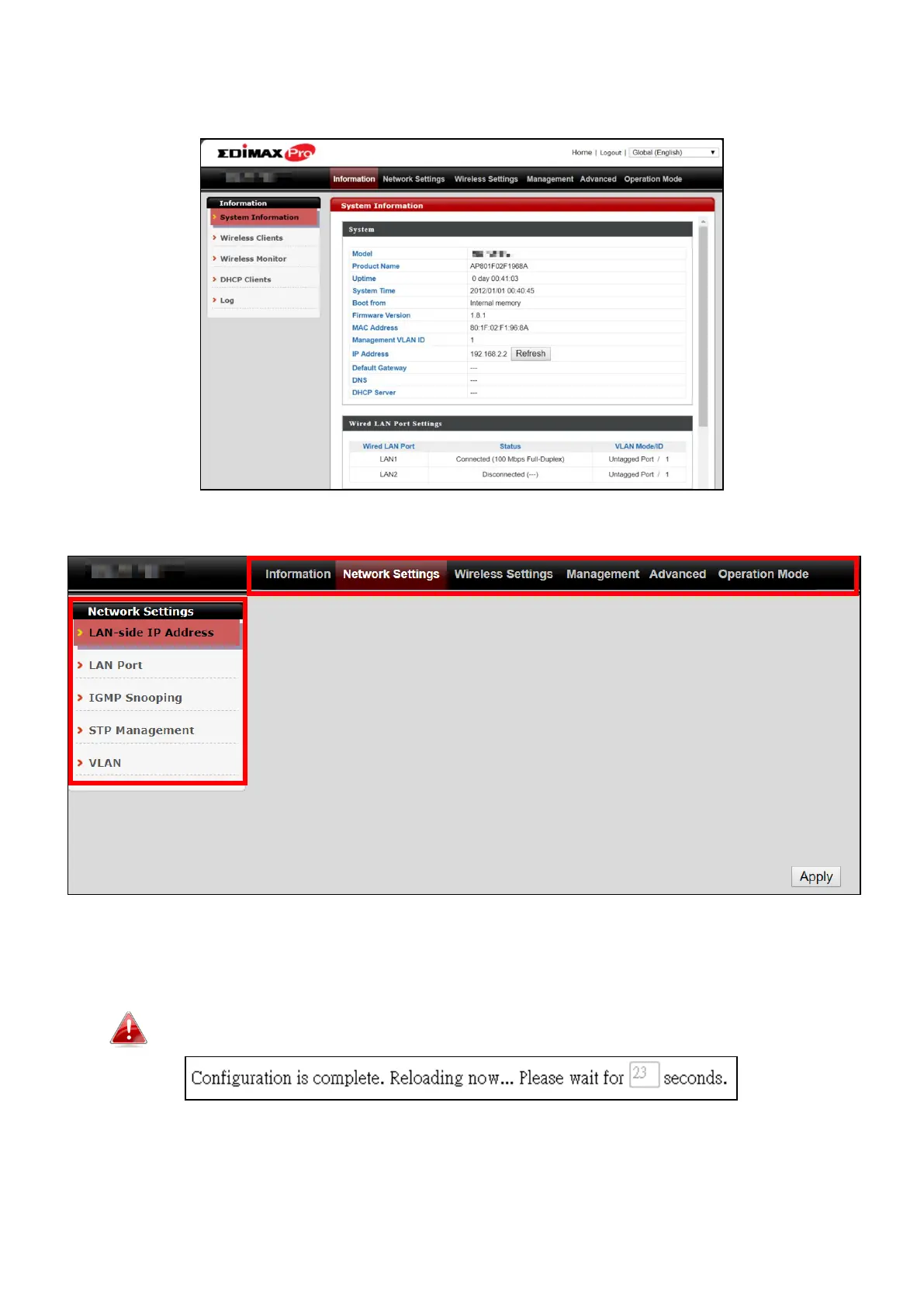 6. Where applicable, click “Apply” to save changes and reload the access