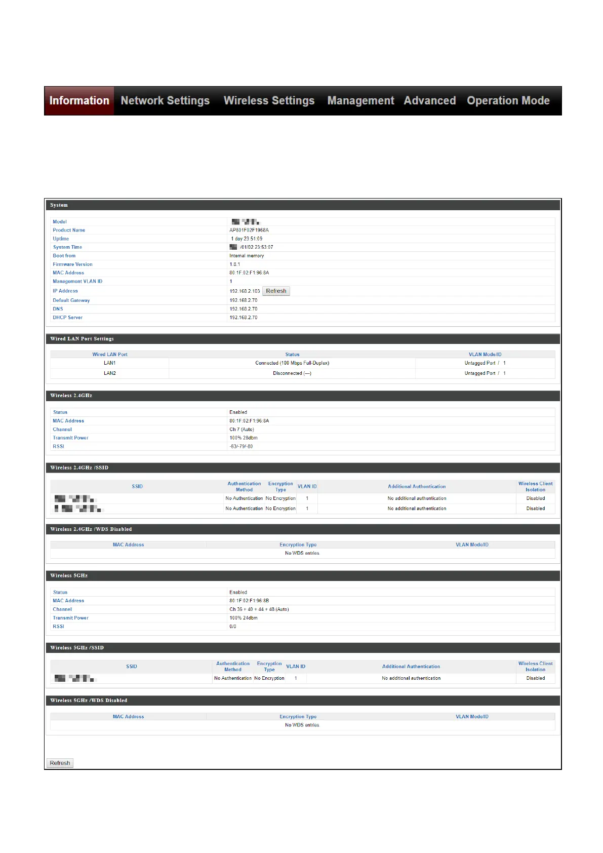 Edimax OAP1300 - Information; IV-1-1 System Information