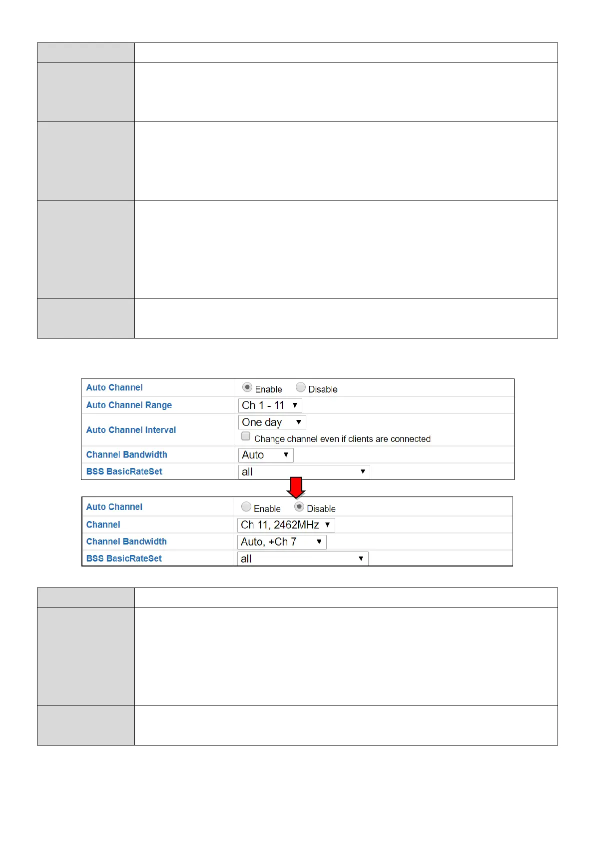 When auto channel is disabled, configurable fields will change. Select a