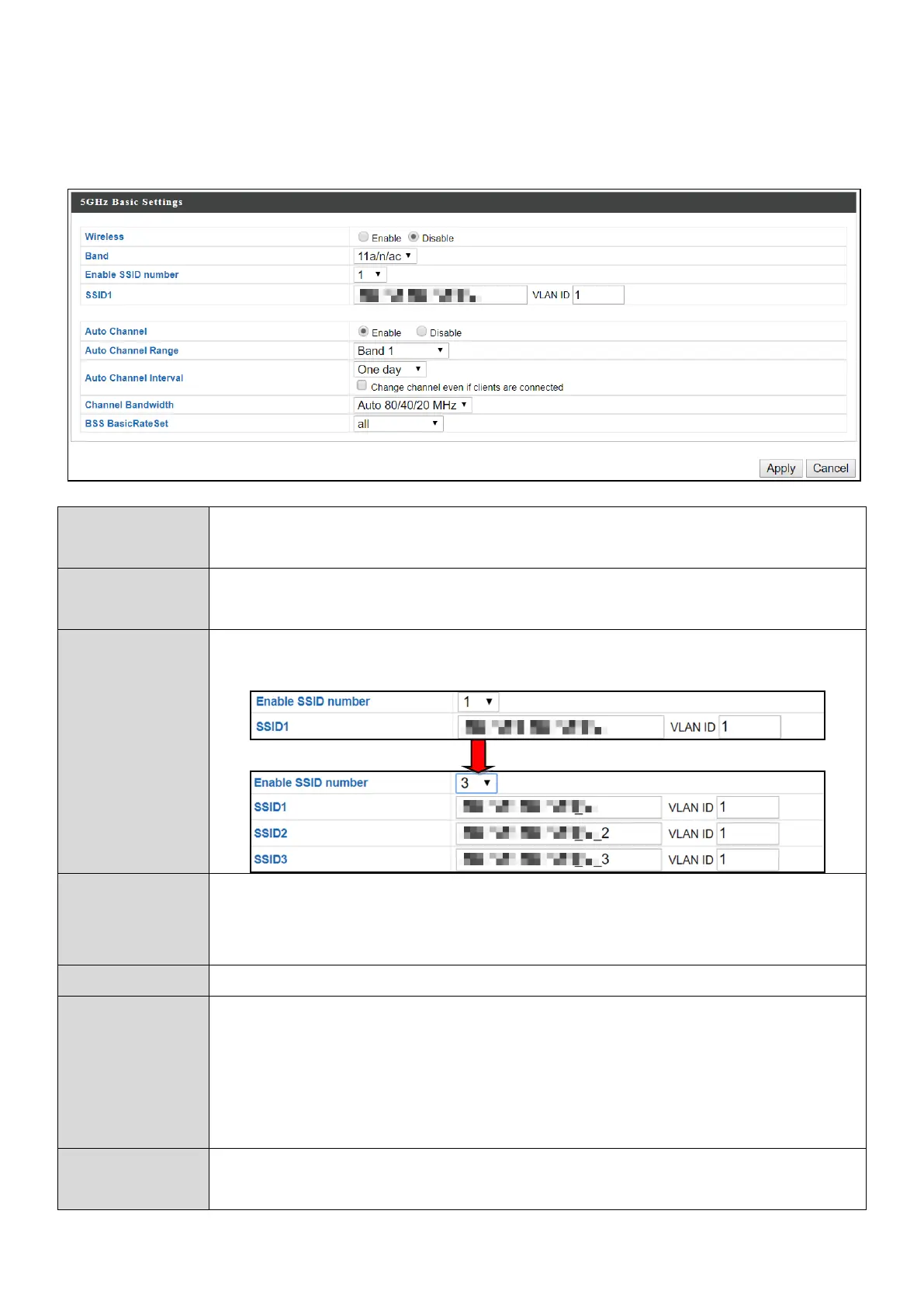 The “Basic” screen displays basic settings for your access point’s 5GHz Wi-Fi