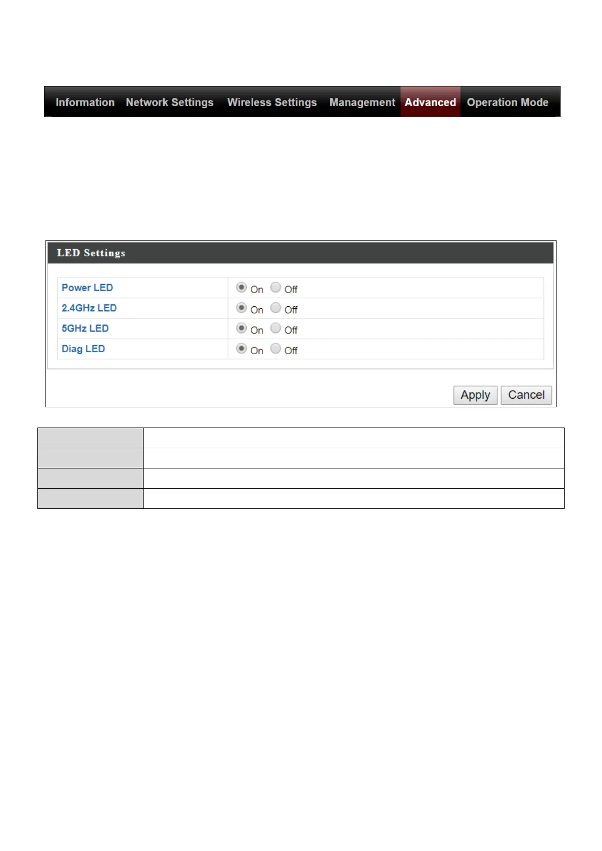 Edimax OAP1300 - Advanced; IV-5-1 LED Settings