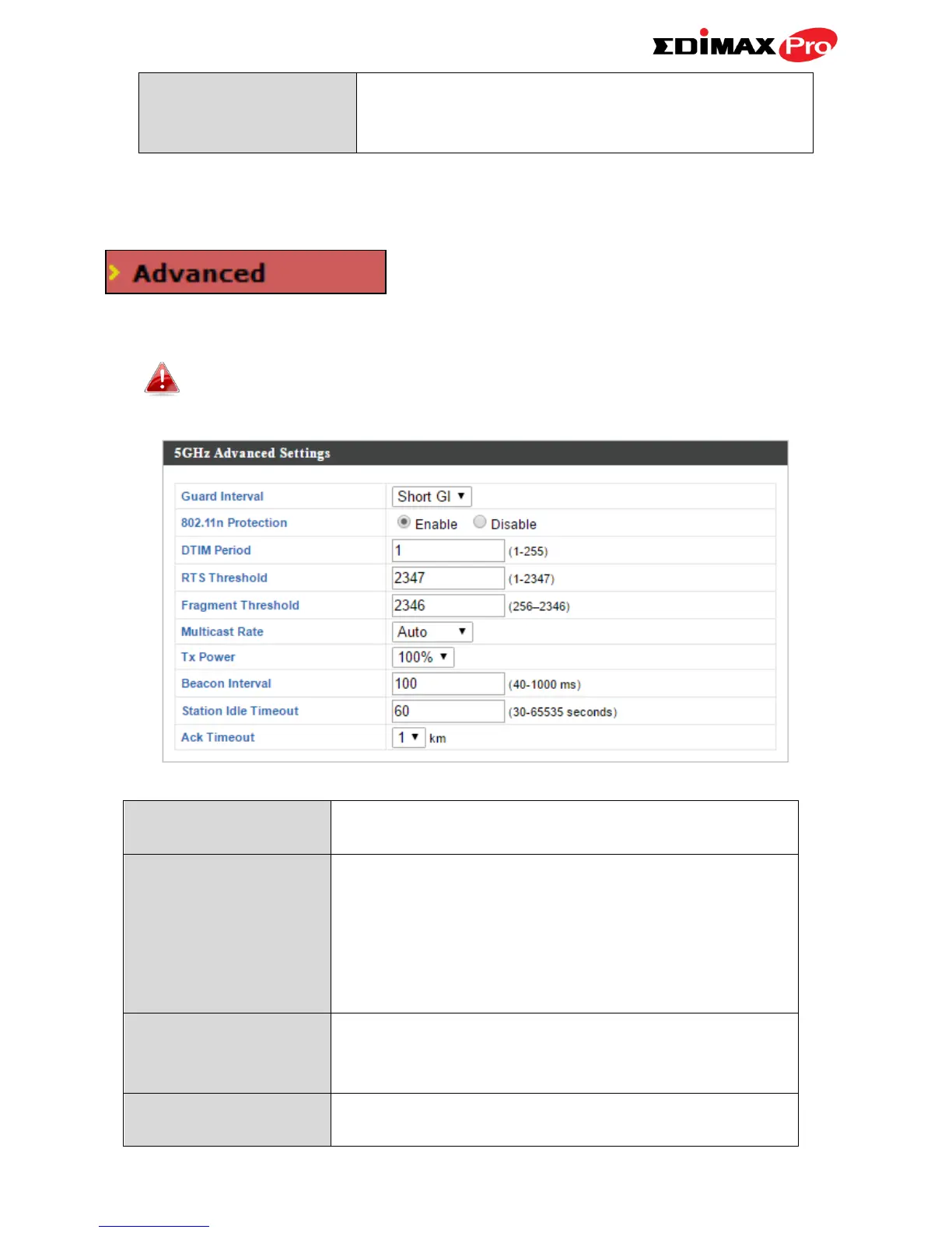 These settings are for experienced users only.