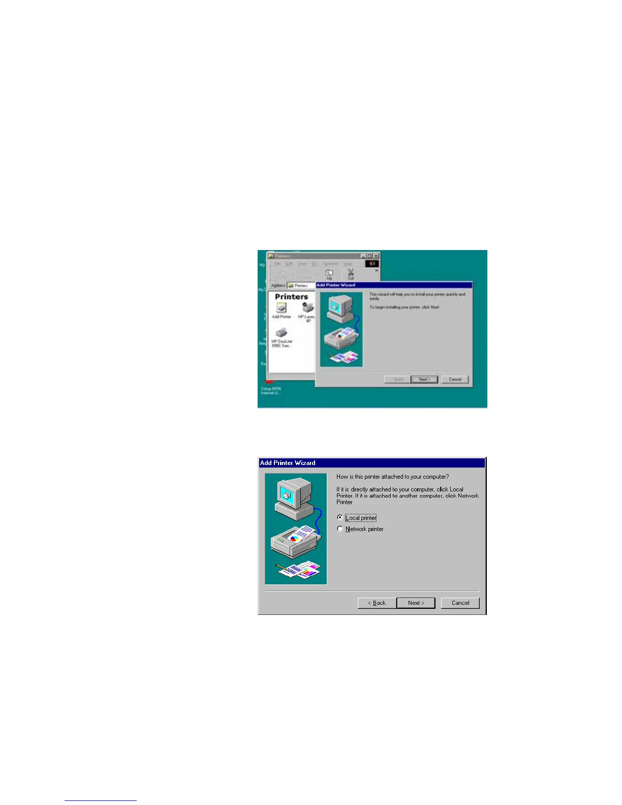 Printer” procedure as described below to add network