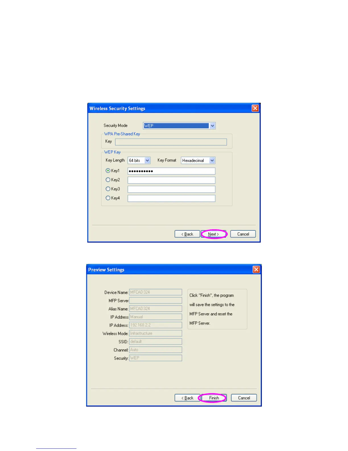 “Wireless Security Settings” screen will be appeared. You