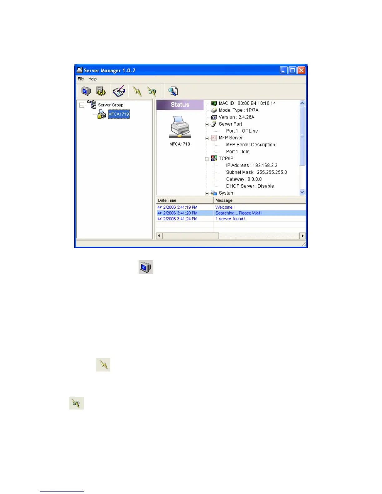 selected MFP Server will be showed on the right side of the