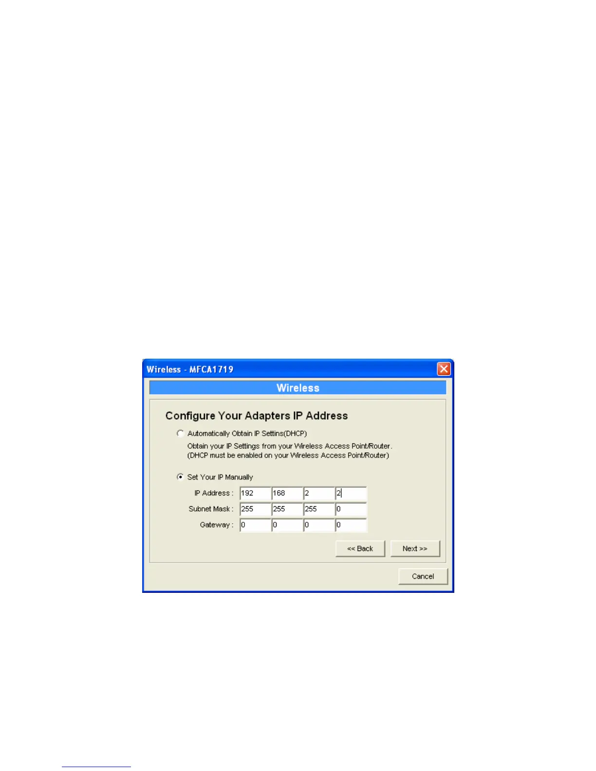 settings with DHCP client or manually assign the IP settings.