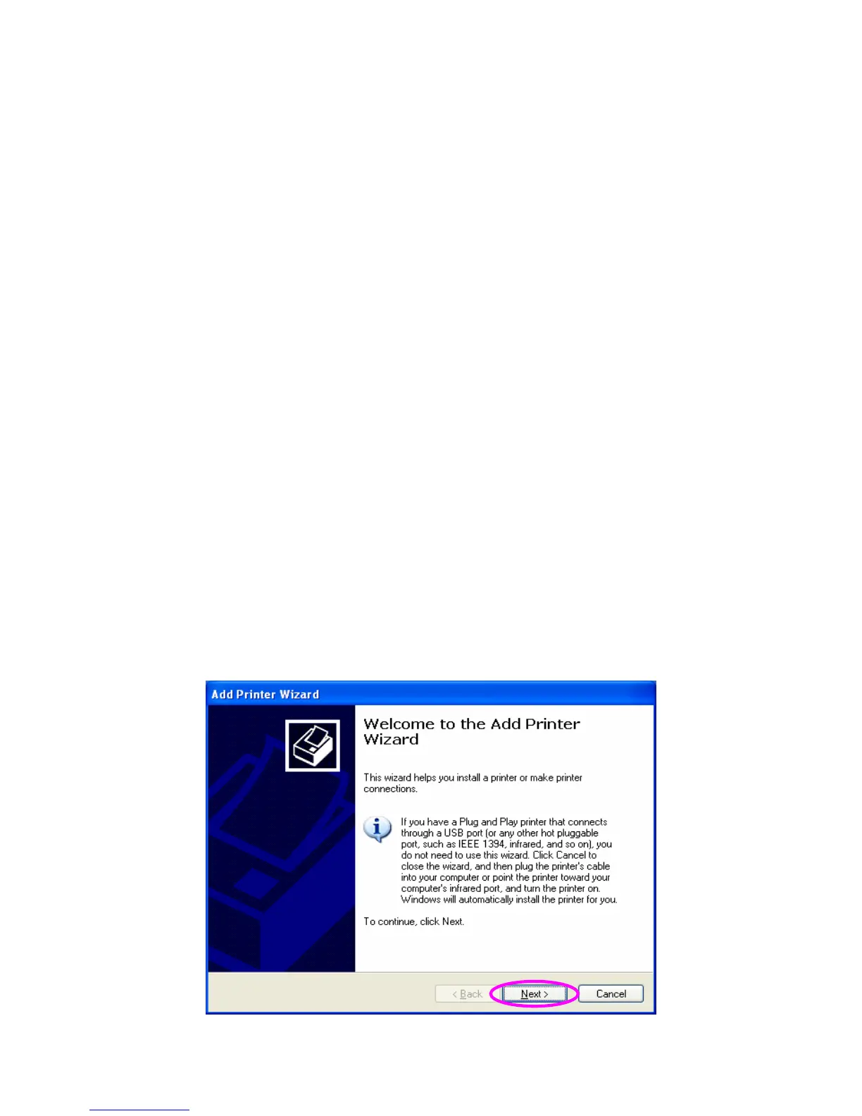 3. The “Add Printer Wizard” is displayed. Click “Next”.