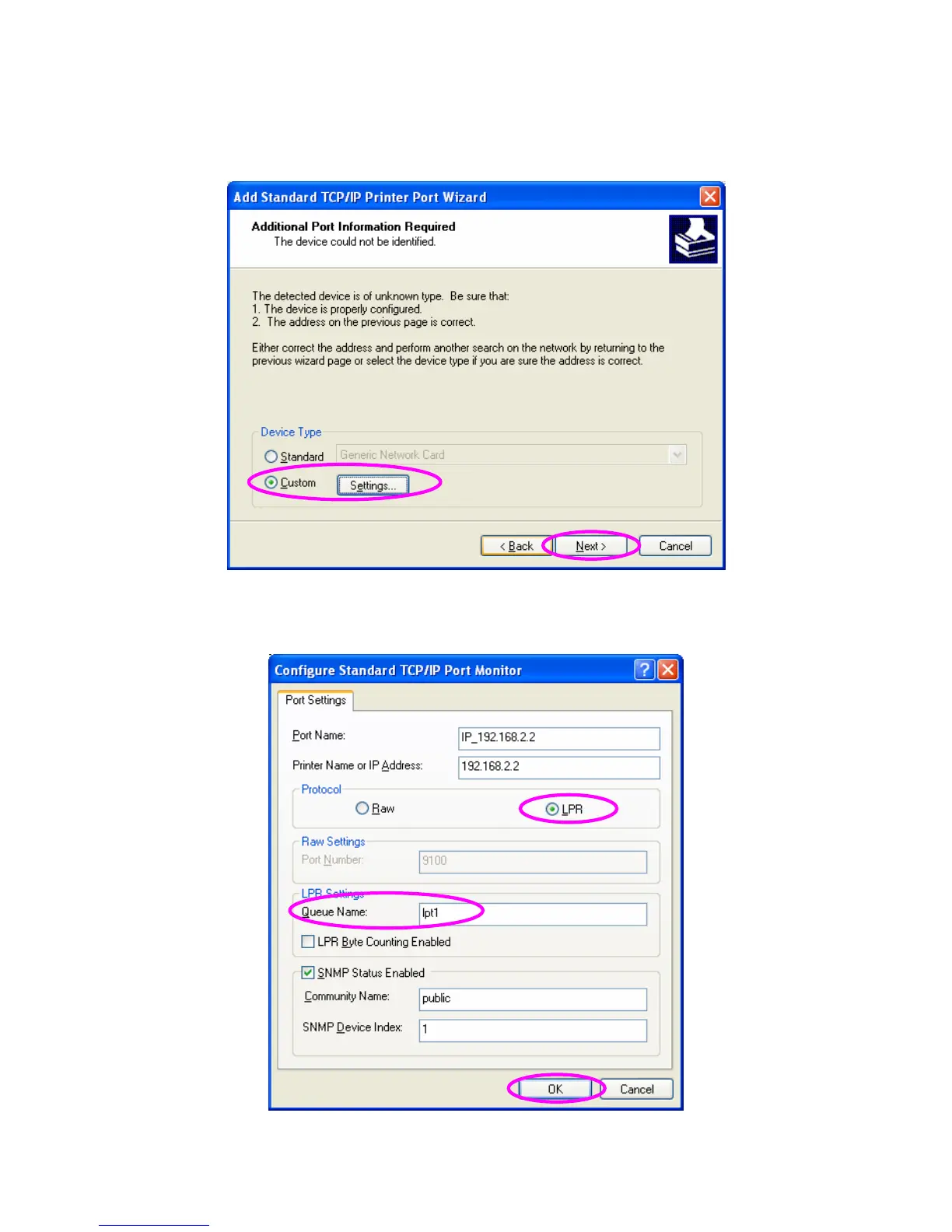 9. Select “LPR” and enter “lpt1” in the “Queue Name”, click “OK”.