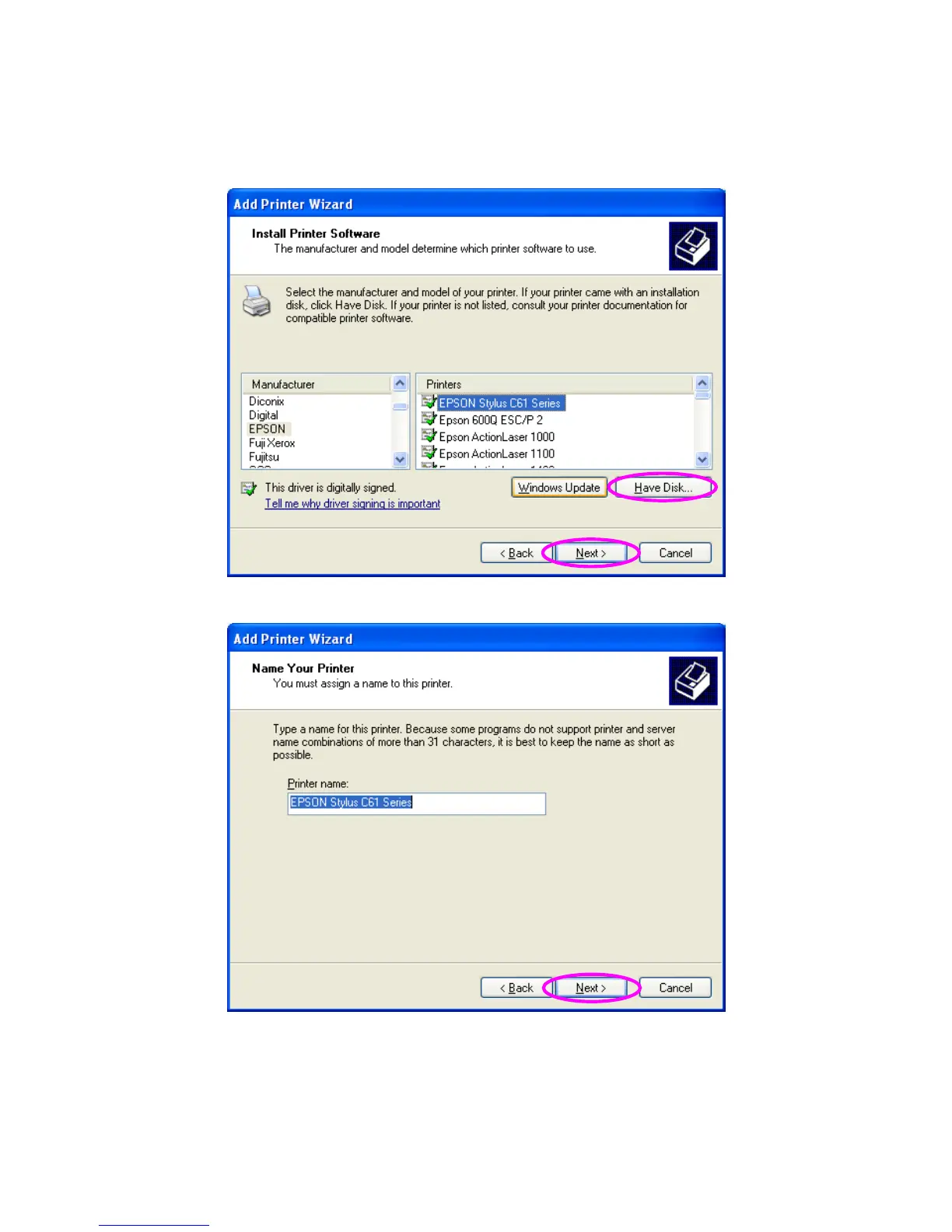 your printer is not in the list, click “Have Disk…” to install the driver of the