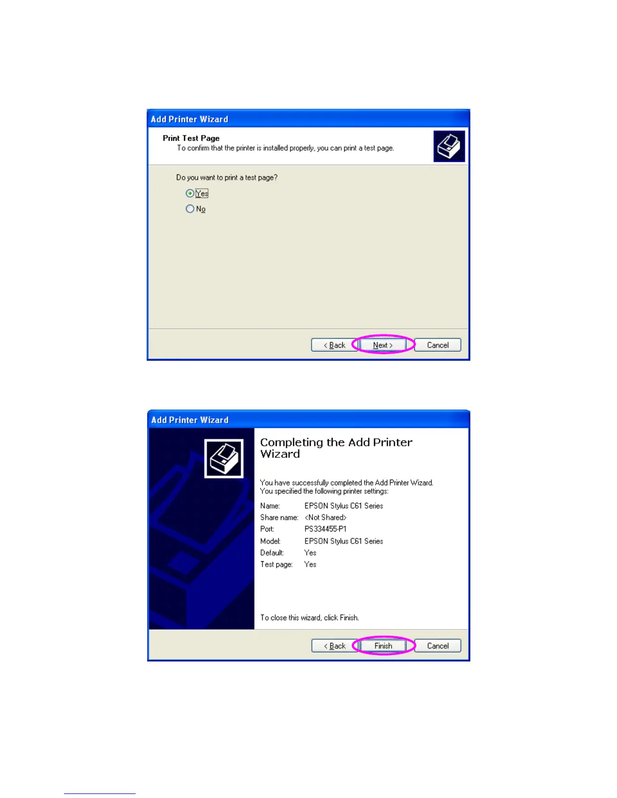 8. Choose to print the test page or not. It is recommended to print a test page.