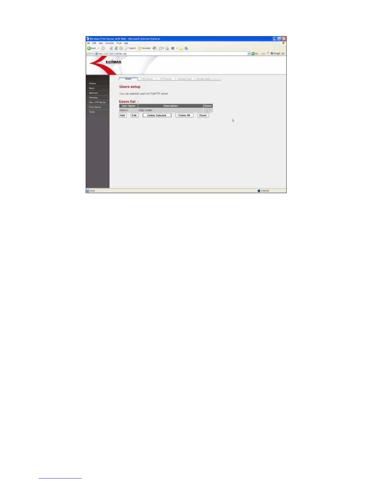 access by authorized users in the “Storage Server” menu of “FTP/File