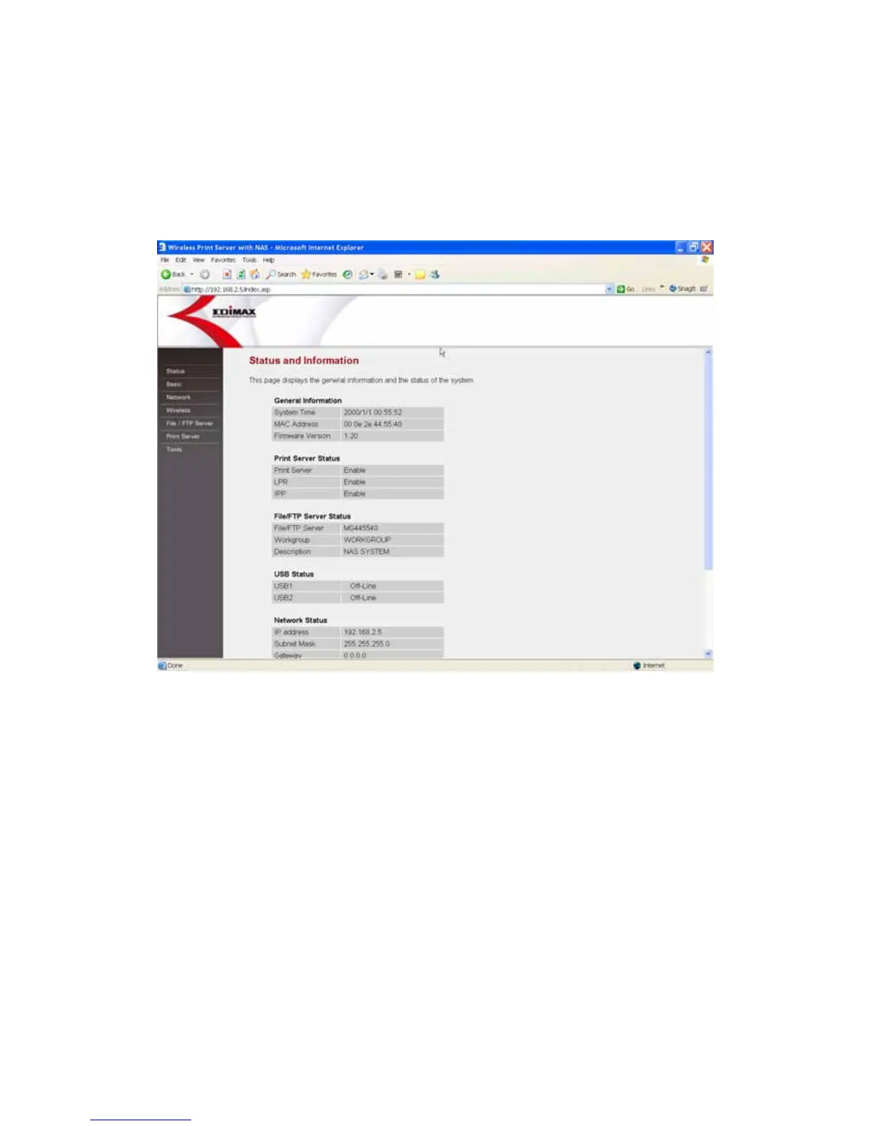 including system time, firmware version, network settings and the USB port