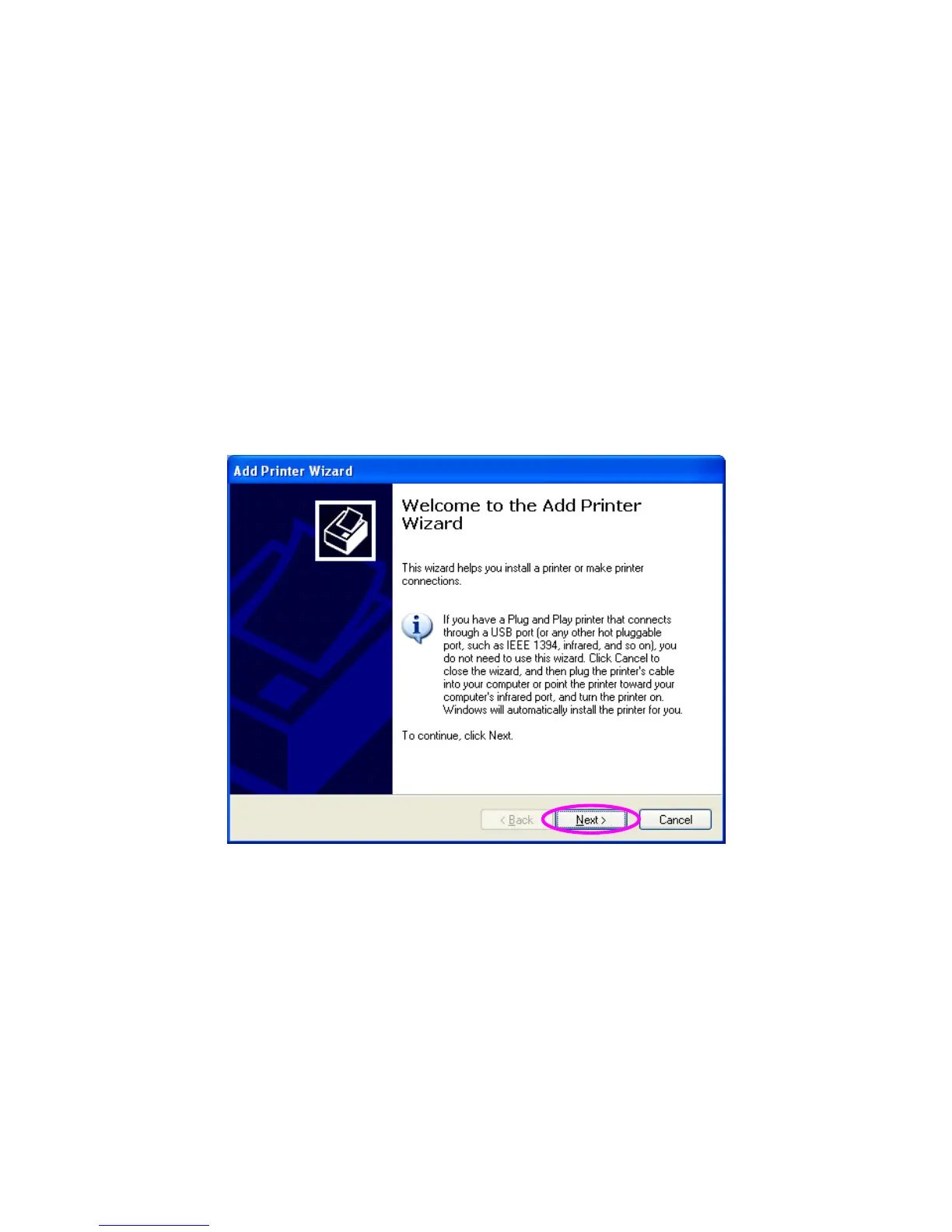 3. The “Add Printer Wizard” is displayed. Click “Next”.