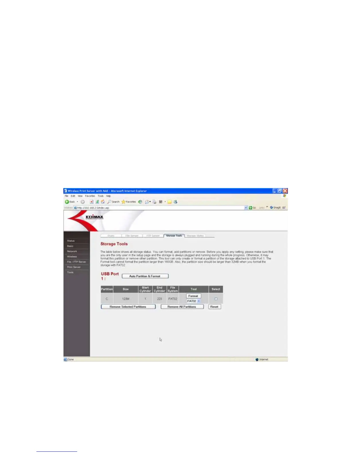 Note1: It is recommended that use the Storage tools to partition and format the