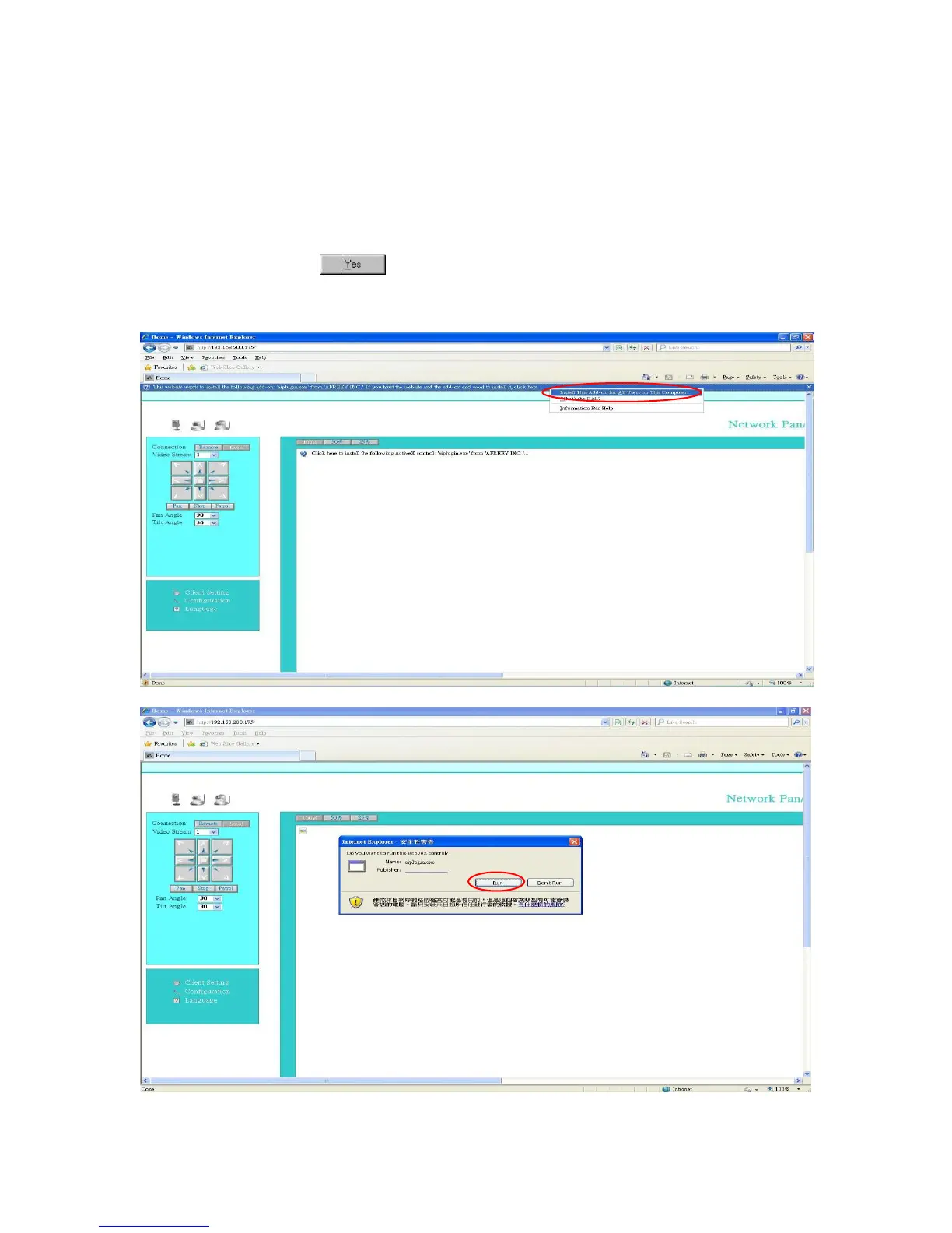(1) For the initial access to the Network Camera in Windows, the web browser may