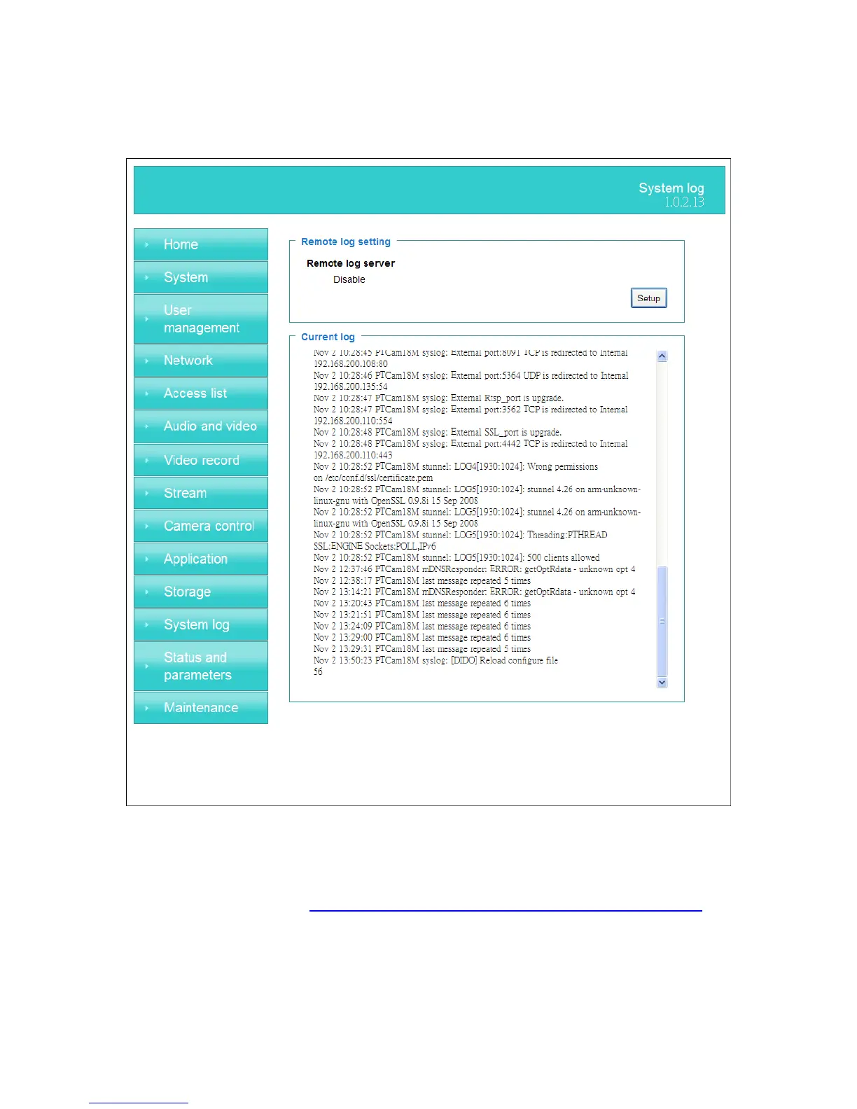 The Network camera supports log the system messages on remote server.