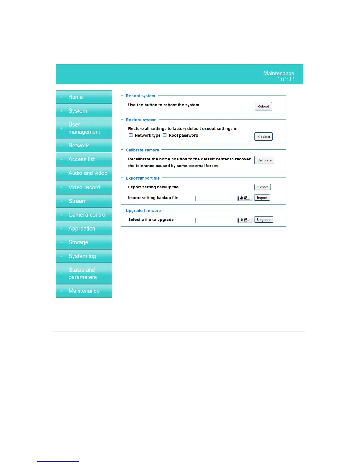 1. “Reboot system” The “Reboot” button will reboot the Network Camera. It‘s useful