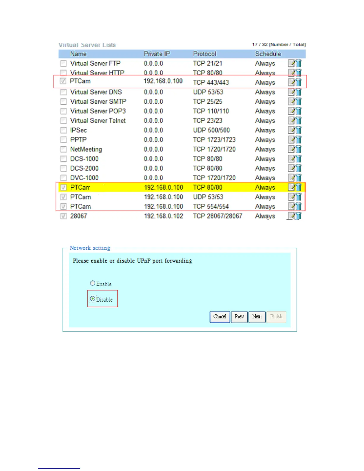 2.Go to camera Network page. Disable UPnP port forwarding function.