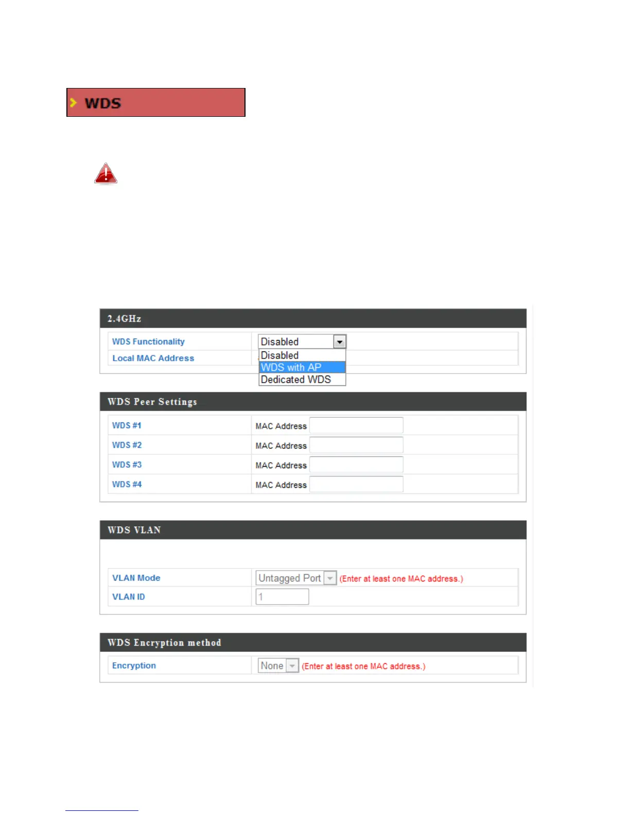 extended network. WDS settings can be configured as shown below.