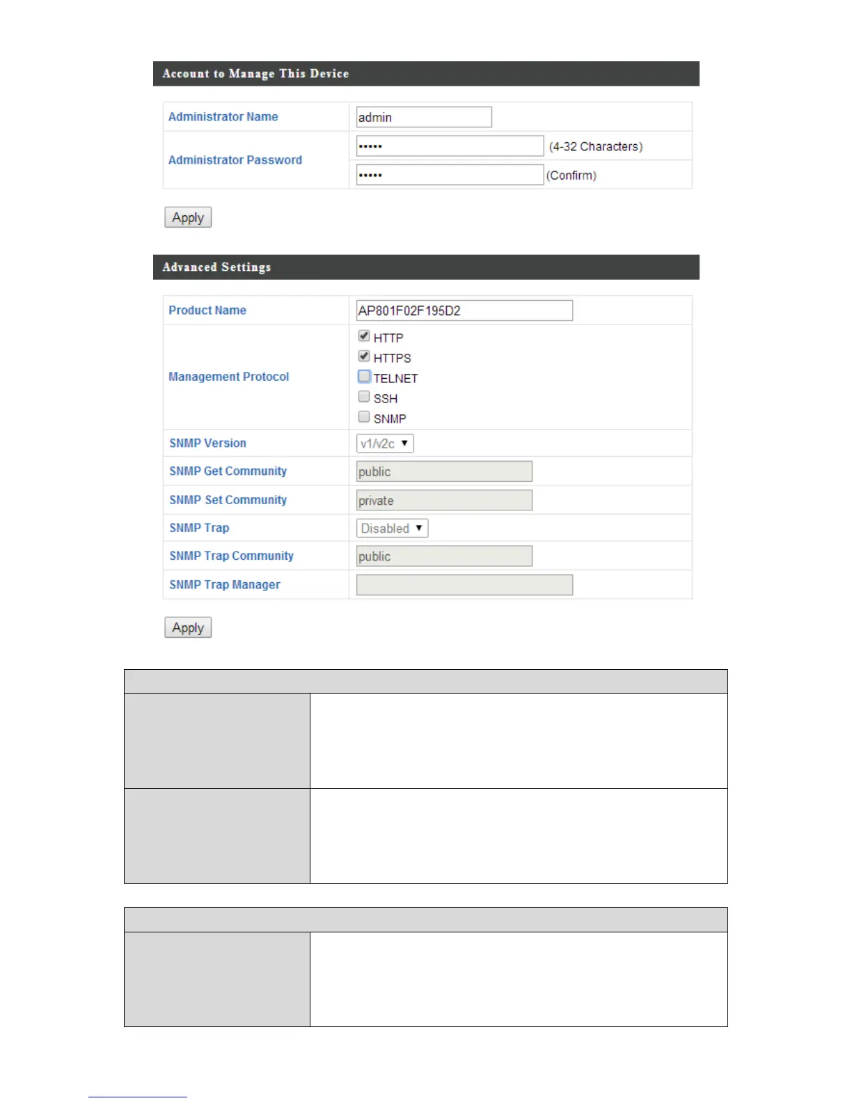 Set the access point’s administrator name.