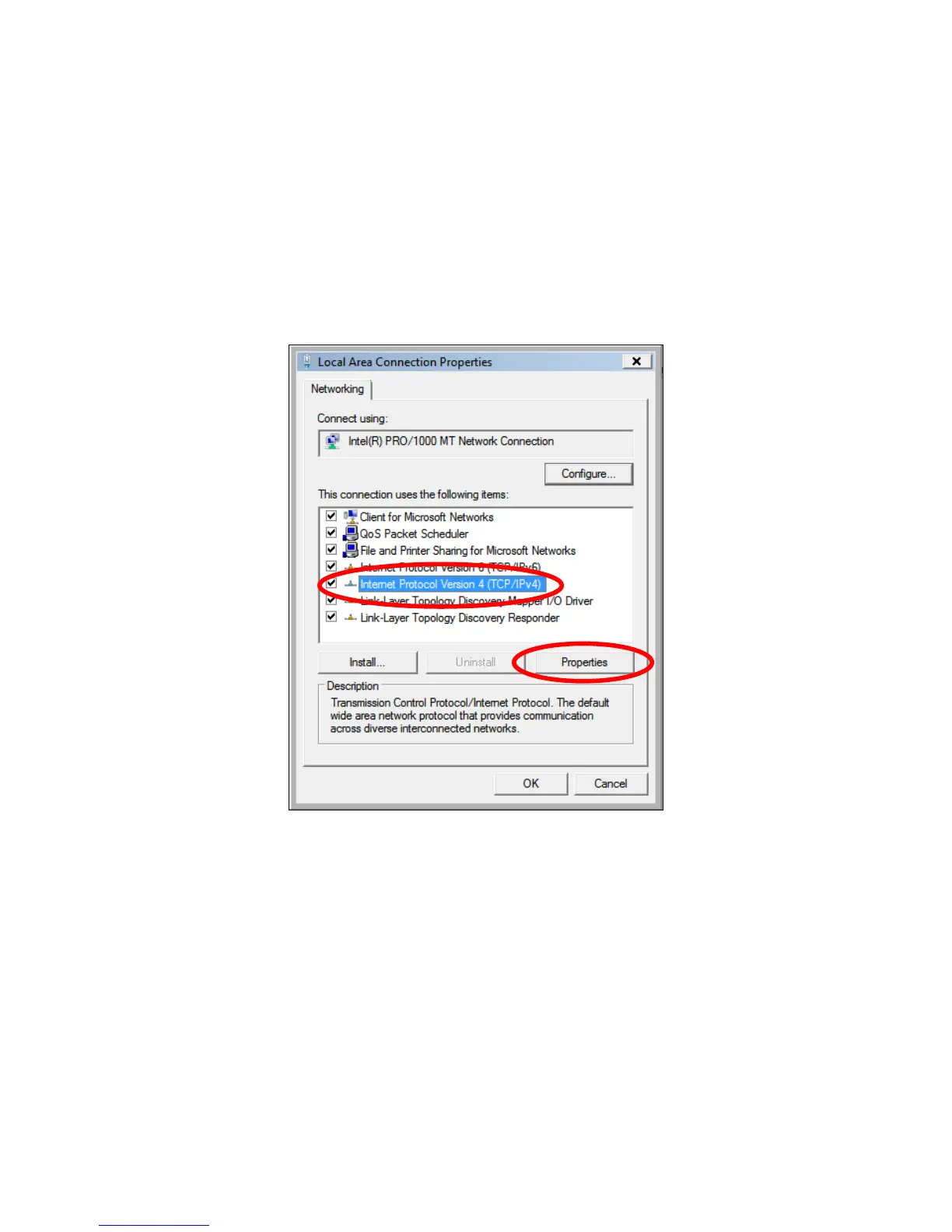 Network”, then select “Properties”. The “Local Area Connection Properties”