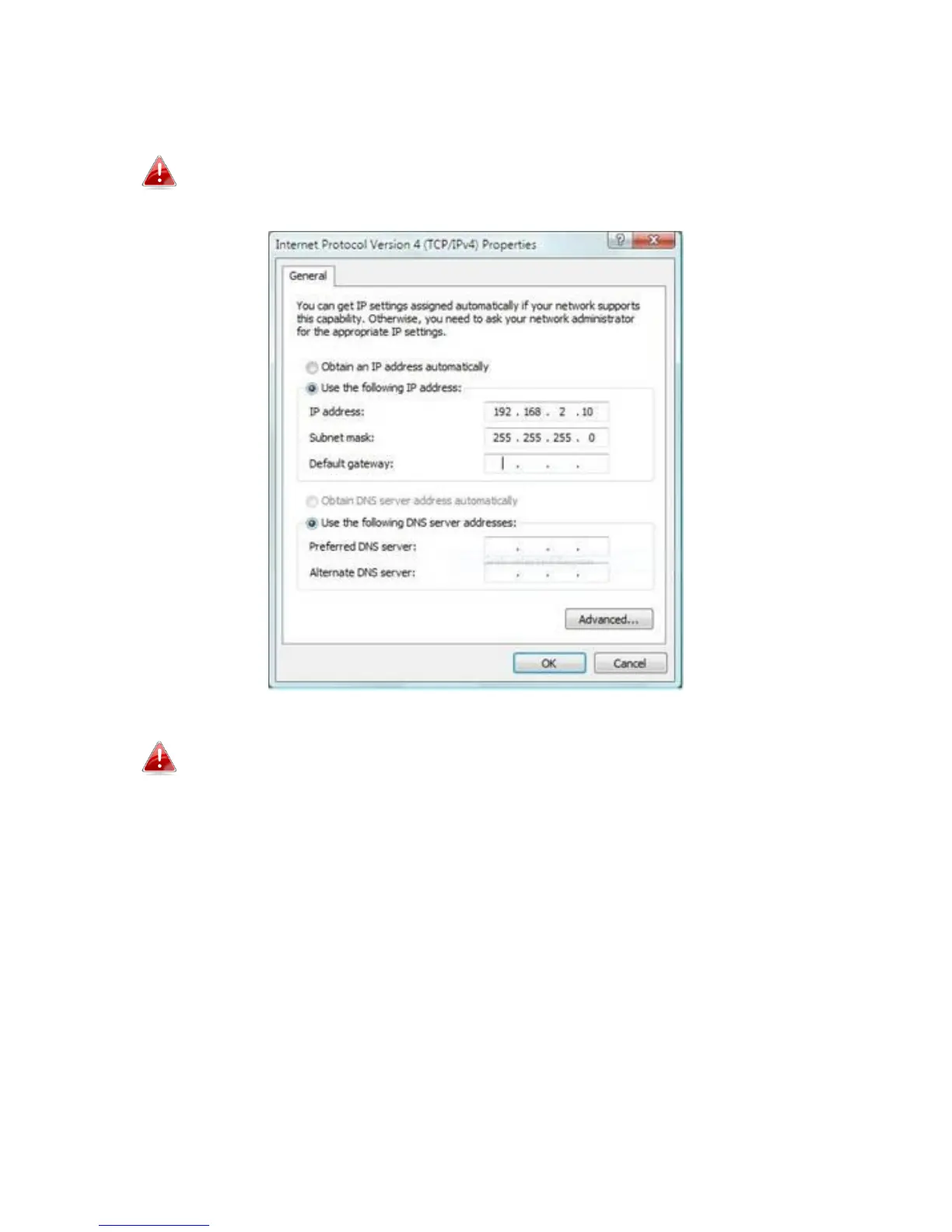address field. The default IP address is 192.168.2.2
