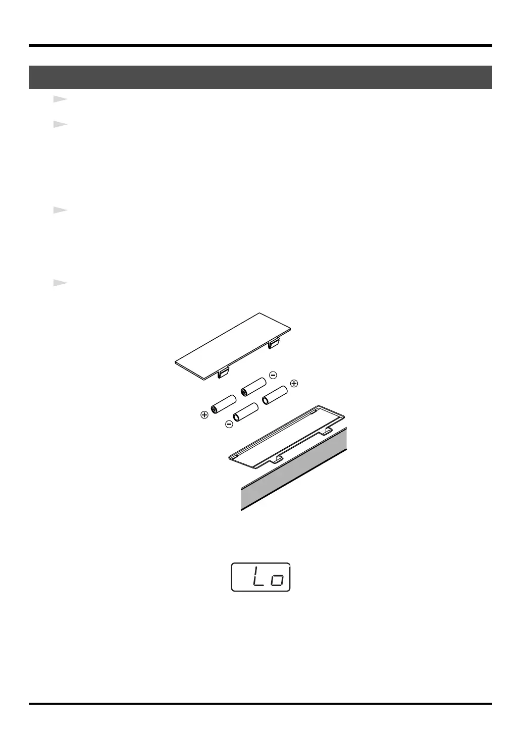 When the batteries run low, the display will indicate “Lo.” When this message appears, replace the