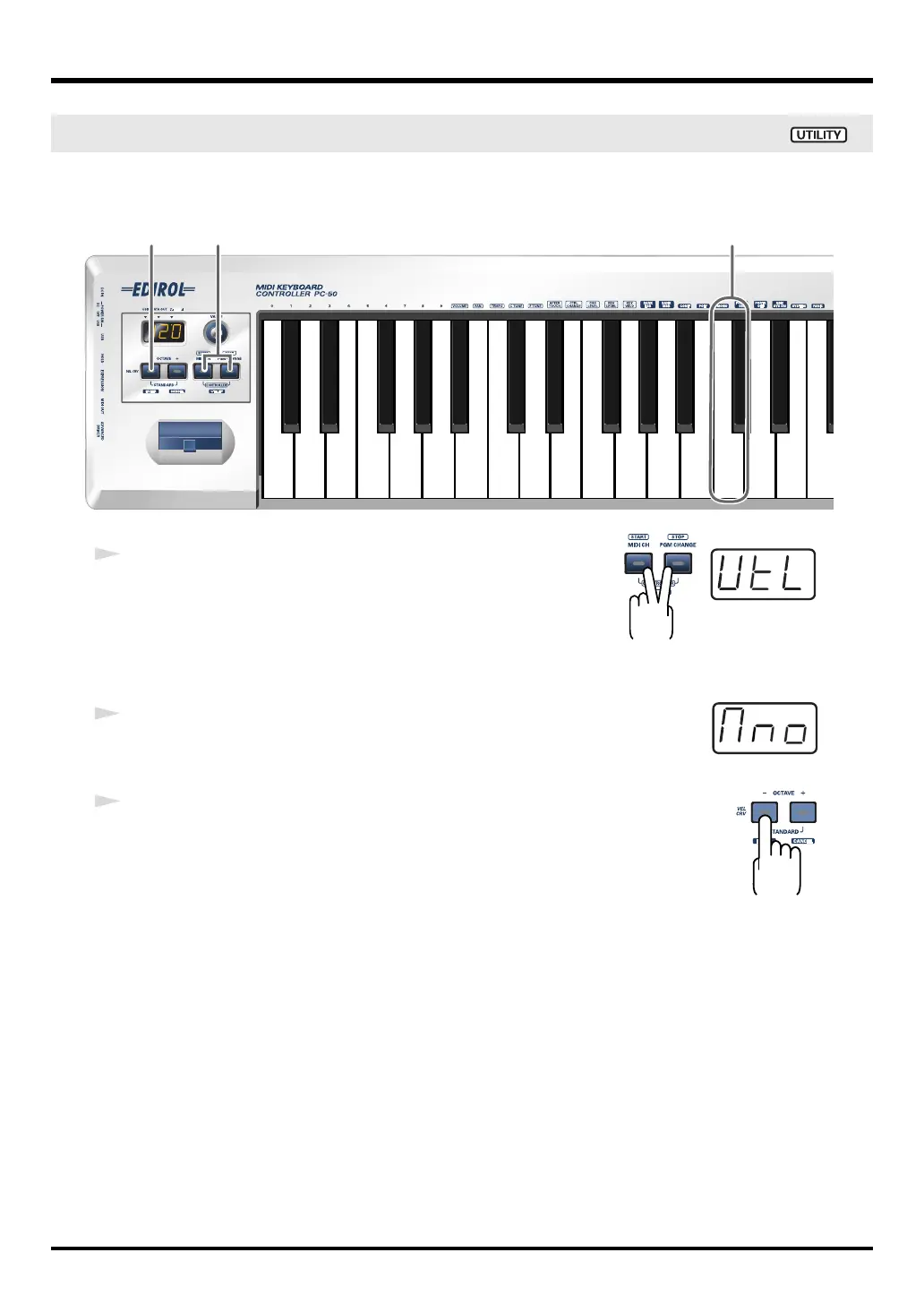 The display will indicate “UTL,” and the PC-50 enters UTILITY