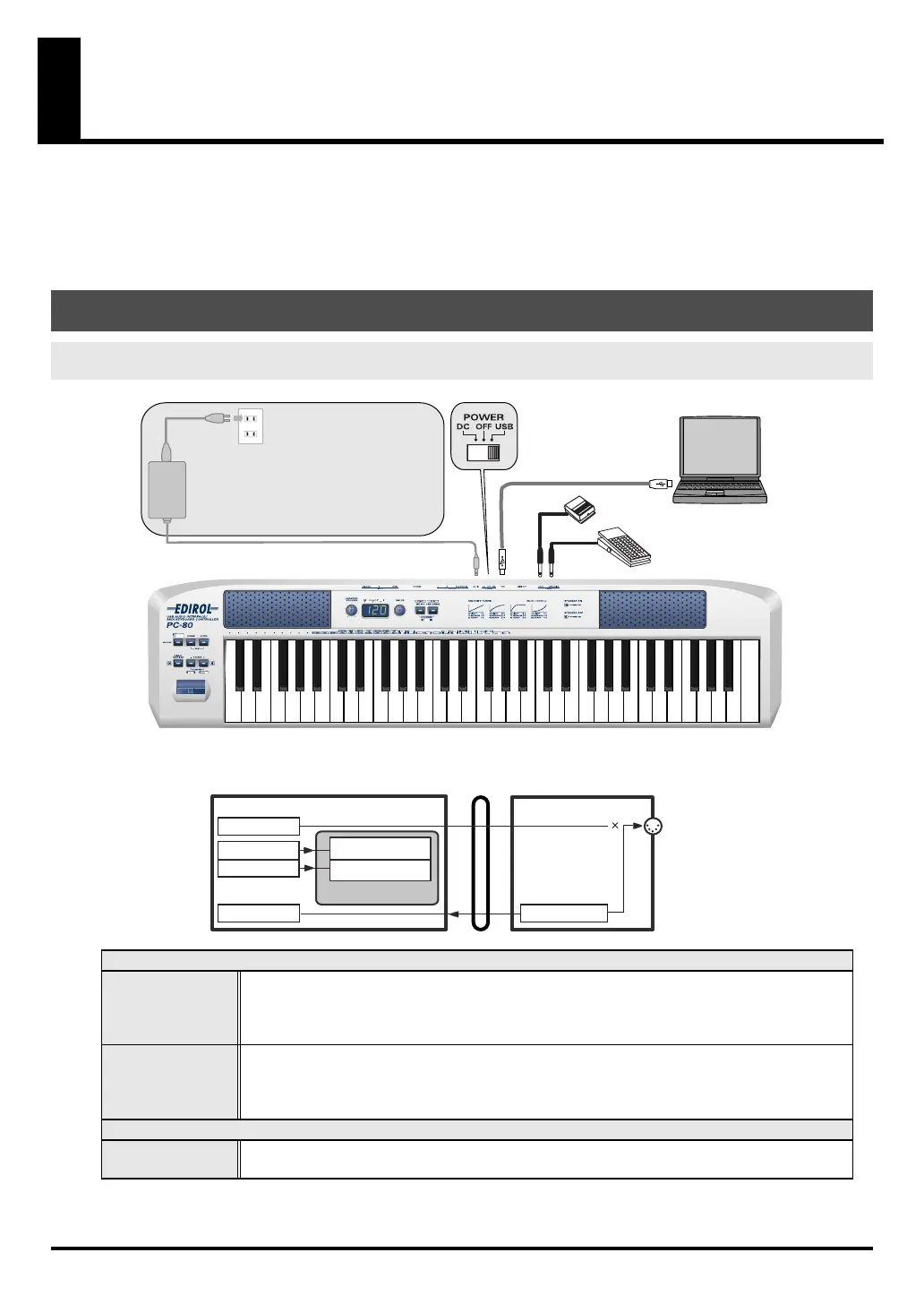 This section explains the basic connections for the PC-80 and the flow of MIDI messages.