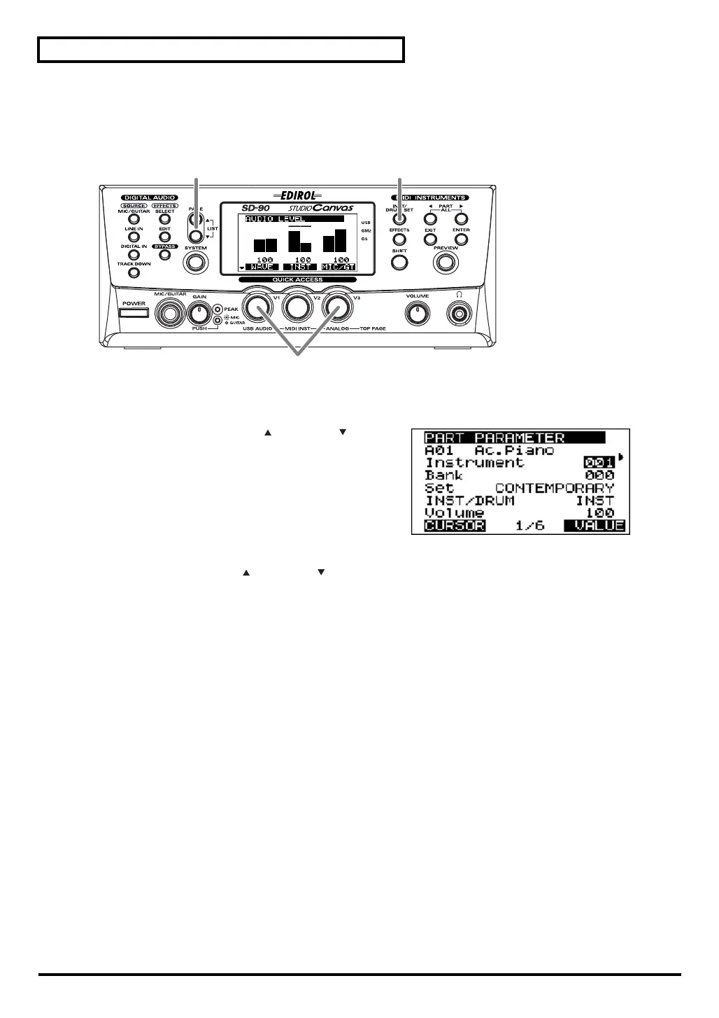 knob, the value of the selected parameter