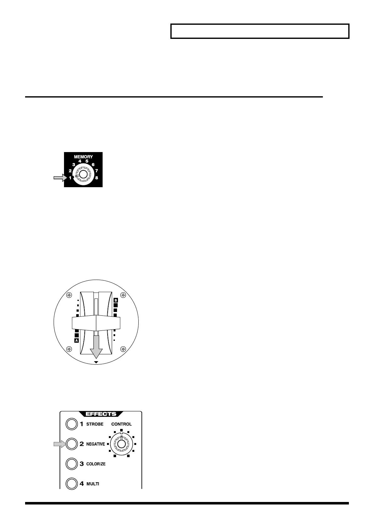 To output the image of channel A, move the video fader to channel A.