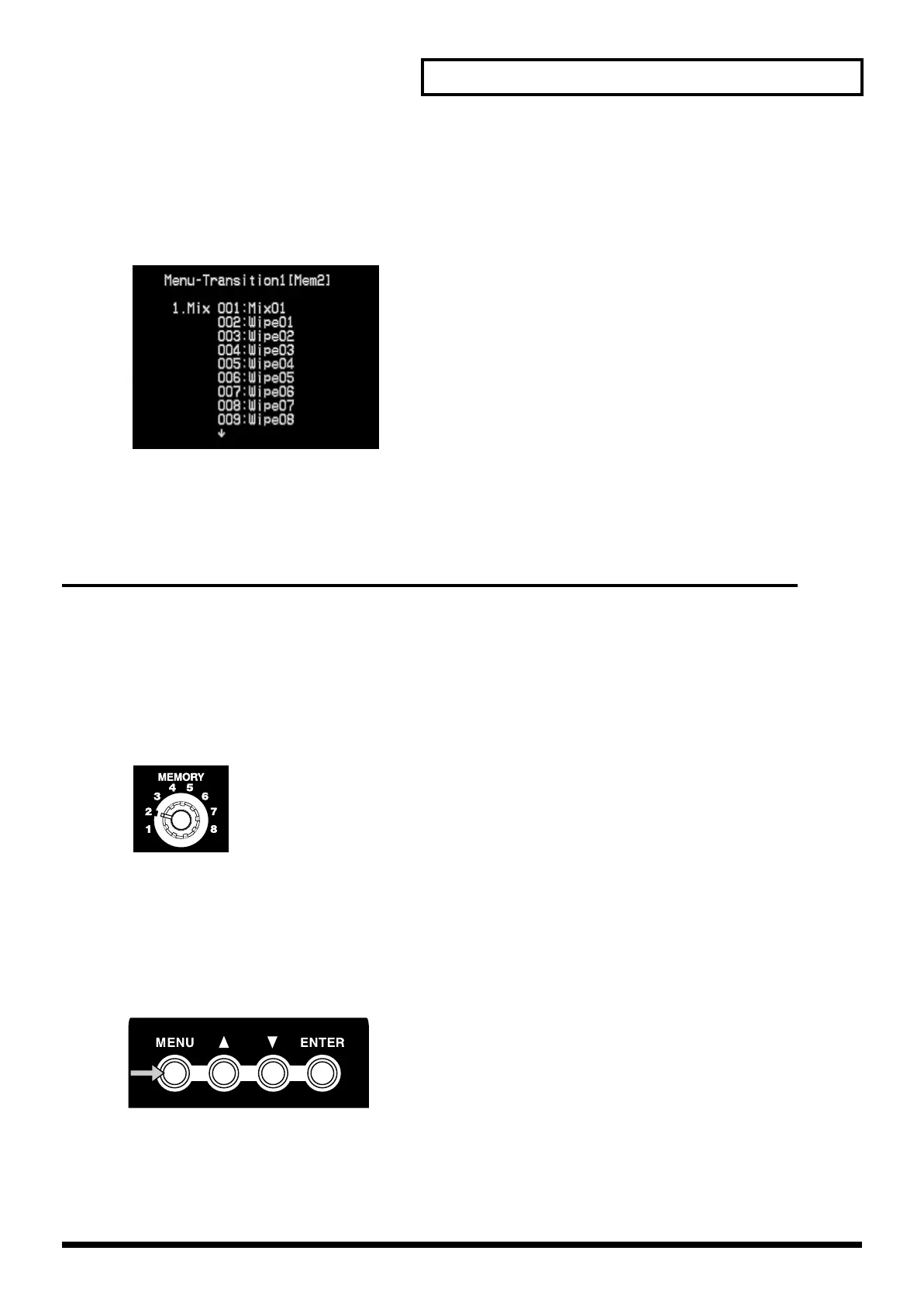 Use the cursor buttons to select the type of transition effect. With an effect selected (blinking) and