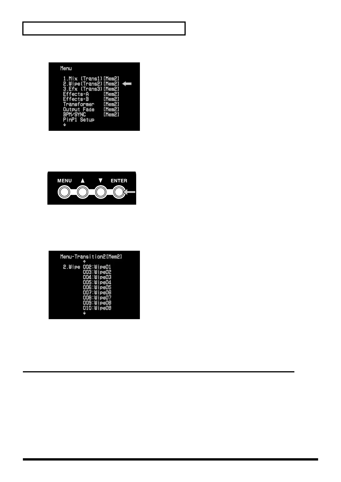 Use the cursor buttons to select the type of transition effect. With an effect selected (blinking) and