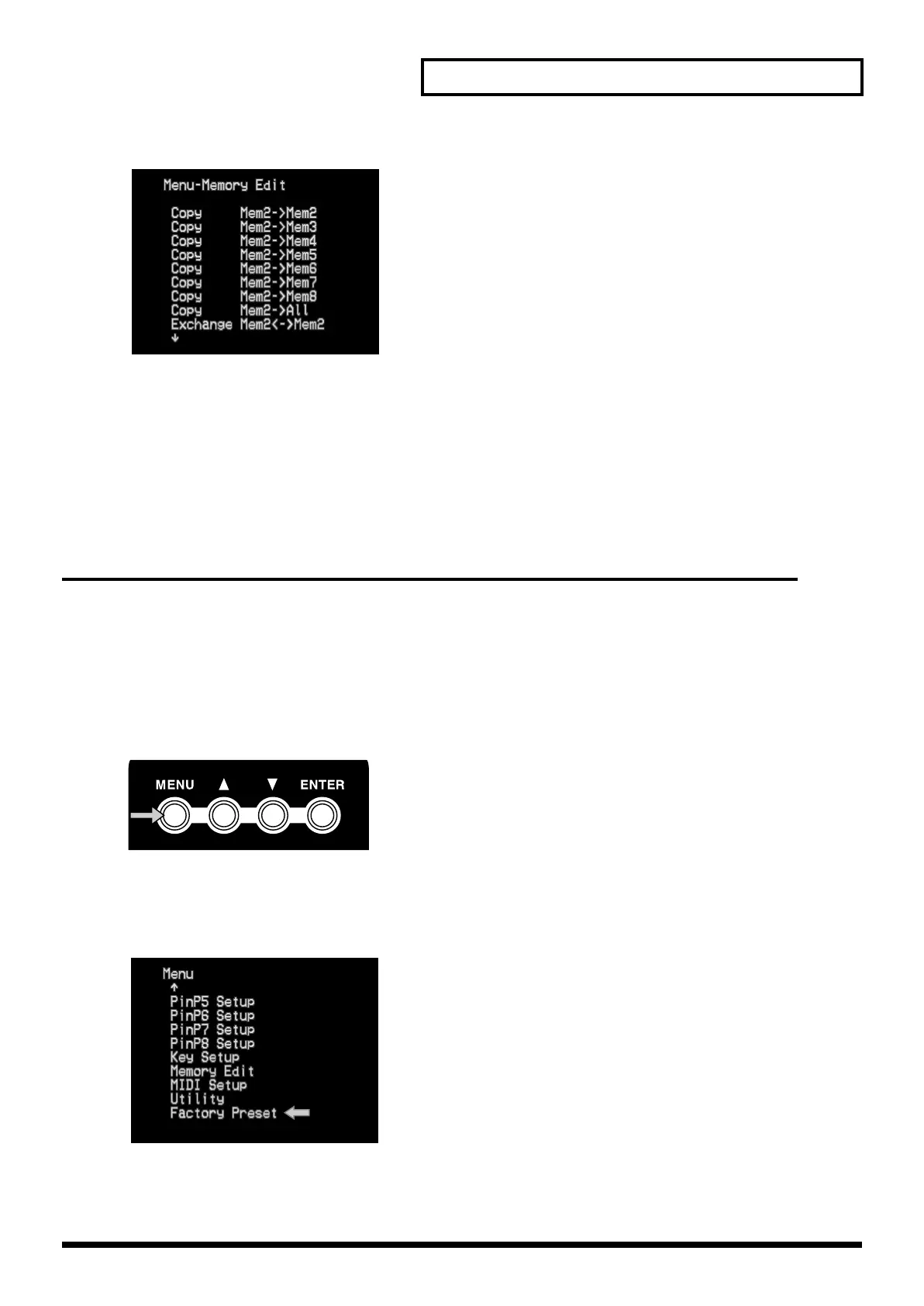 Use the cursor buttons to select “Factory Preset.” Press the enter button (ENTER) to move to the