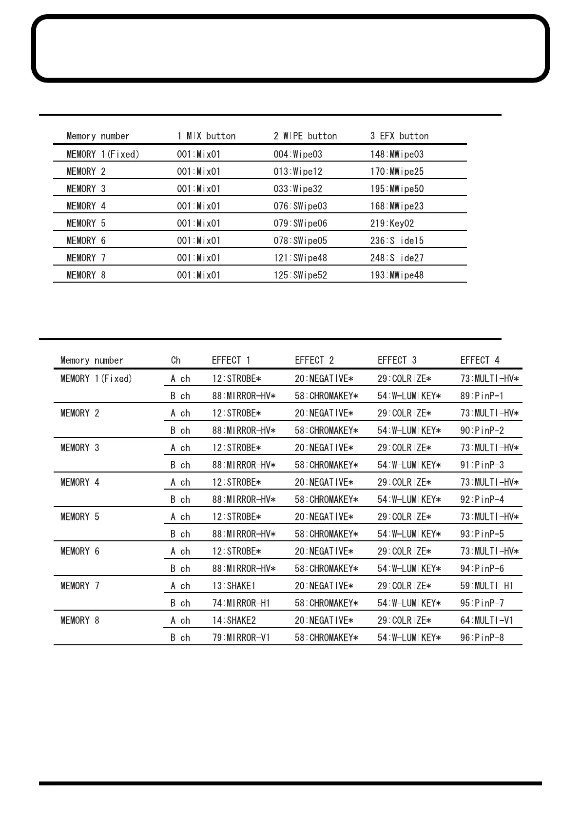 Edirol V-4 - Transition Effects List; Factory-Default Transition Effects Assignments