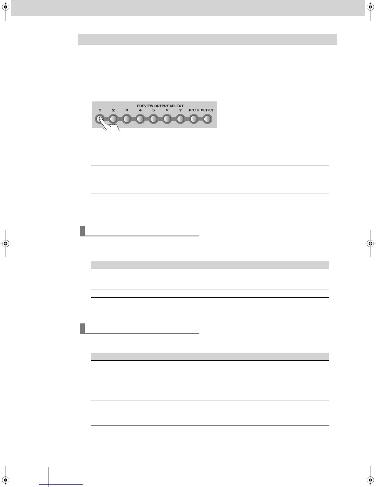 Press the PREVIEW OUTPUT SELECT buttons to switch between preview output channels.