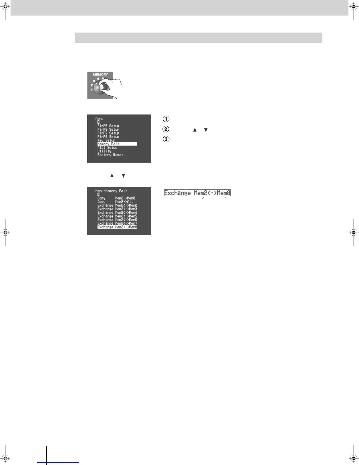 Here’s how to exchange the contents of the currently selected memory number with a different memory number.