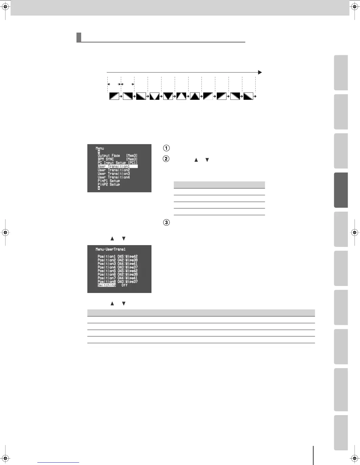 You can automatically switch between the eight transitions that comprise the user transitions (p. 38) in synchronization