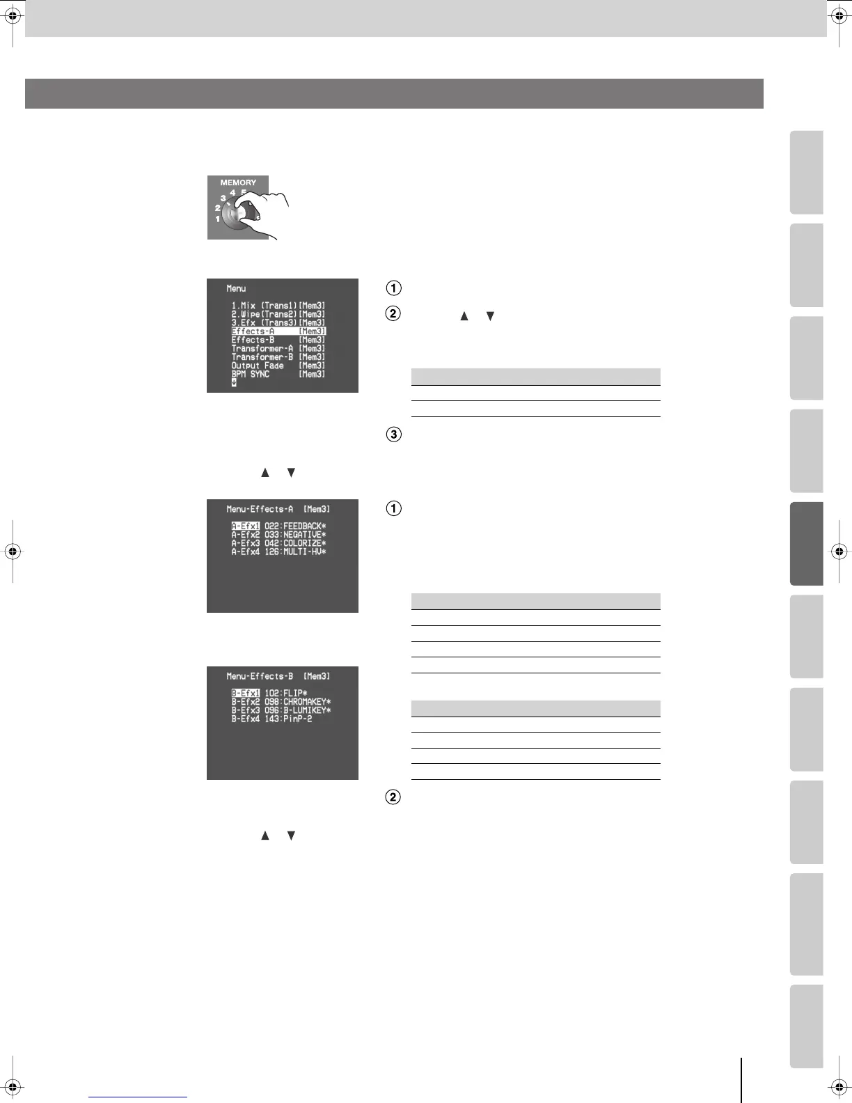 Press the [MENU] button to access the menu, and choose “Effects-A” or “Effects-B.”